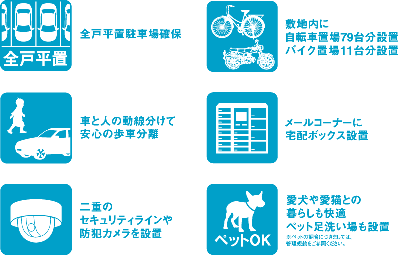 眺望や採光・通風に優れ、毎日便利に快適にお過ごしいただけるような細やかな配慮と動線を施したランドプラン。